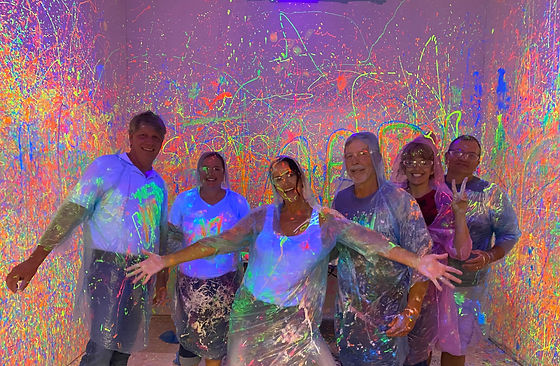 We are a modern immersive experience inspired by the action painting art movement of the 1950 and 1960s. Experience the fun of splatter painting. We provide you with a full body jumpsuit goggles gloves and 6 stock colors.